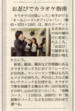 カラオケの出張レッスンを手がける「オールニーズ・オブ・ジャパン」は、客のターゲットを若者から中高年層向けに変更したところ、「お忍び」で練習する需要が増えたという。新宿、銀座、横浜など首都圏にあるカラオケボックスにボイストレーナーが出向き、マンツーマンで歌はもちろんマイクの持ち方、声の出し方など細かいテクニックを伝授する。カラオケで歌を披露する機会が多い会社役員など申し込みが目立つという。(1回50分、5000円)や「短期集コース」などを目的に合わせて選べる。 |